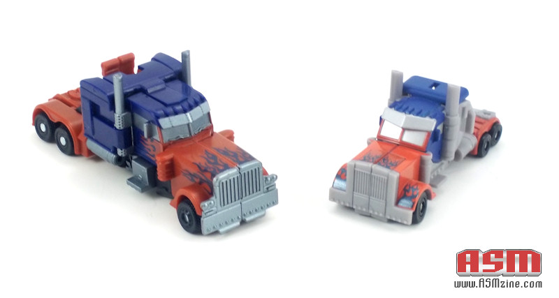 The sculpting detail is impressive! While you can’t get the full detail of the larger Optimus toys in this small one, little touches here and there evoke the bigger toys. I especially like the sculpted grill in robot mode.