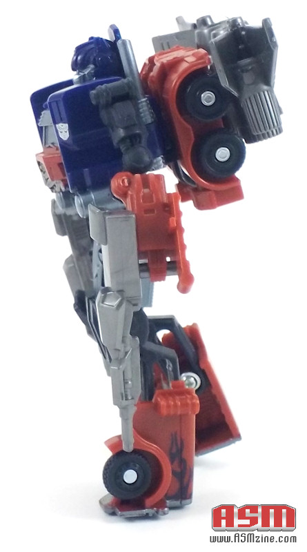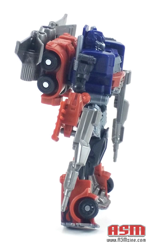 Articulation? Optimus has got it — shoulders, elbows, waist (as part of the transformation), knees, hips. Perhaps he’s a little too poseable, as I had troubles getting him to stand, but you certainly can get action poses out of the guy.