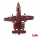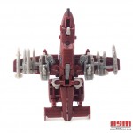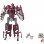 One look at him and you know he’s supposed to be a direct homage to Generation one — maroon colored jet, grey limbs, pointy head. He’s got great articulation and poseability. He comes with two weapons that he can hold in either hand, or you can combine them into a giant weapon for more firepower.