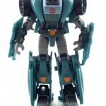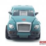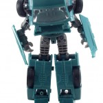 My biggest complaint with Kup (other than my inability to spell Sergeant without wondering if I missed an “a” somewhere) is that he requires a lot of panel massaging to get him transformed to vehicle mode. Once you get things lined up, it all snaps together, but you need to take a little bit of time to do that. Also, his shoulders seem to be on an overly-tight spring assembly. They are in perfect position in robot mode, but they don’t want to move to their position in truck mode without continual force. So it’s a bit of a struggle to get the front end to come together. But once you do, you’ve got a great truck mode. The tailgate can be lowered, his wheels spin nicely, and he’s got a nice teal and grey deco going on.
